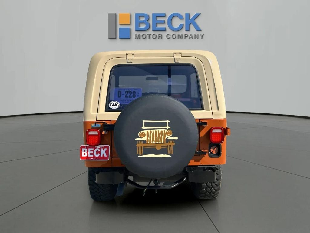 The Jeep CJ7âs sturdy construction and capable 4-wheel drive system make it ideally suited for both on-road and off-road adventures. Its classic open-air design, with removable doors and top, provides an authentic driving experience that connects you with the elements. The vehicle's exterior features the iconic Jeep grille and round headlights, while the interior offers a straightforward, functional layout with durable materials built to withstand the test of time.