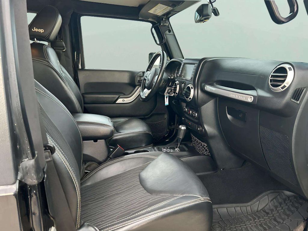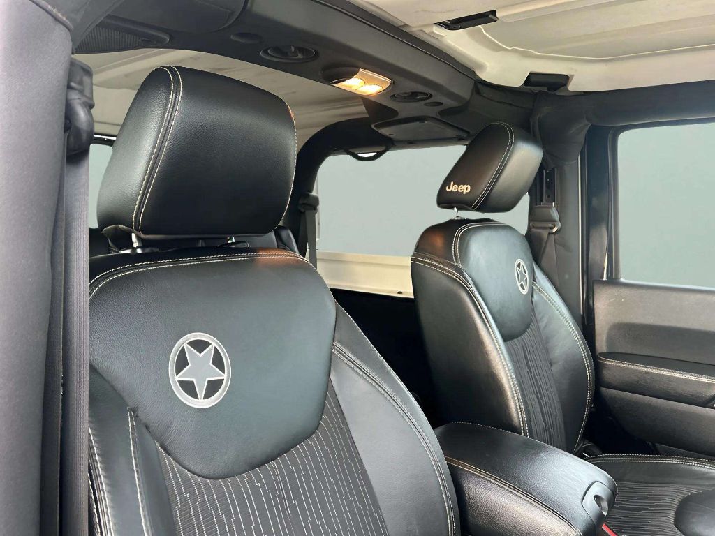 Power Convenience Group: Auto Dim Mirror with Reading Lamp; Front 1-Touch Down Power Windows; Power Heated Mirrors; Security Alarm; Power Locks; Remote Keyless Entry. Quick Order Package 24F Freedom Edition: Rear Passenger Assist Handles Kit; Mineral Gray Grille; P255/75R17 OWL On/off Road Tires; MOPAR Black Tail Lamp Guards; Freedom Edition Badging; Air Conditioning; Deep Tint Sunscreen Windows; Silver Interior Accents; MOPAR Slush Mats; Body Color Fender Flares; Black/mineral Gray Front Bumper; Rock Rails; Freedom Edition Cloth/leather Seats; Quick Silver Painted Accents; Black/mineral Gray Rear Bumper; 17" X 7.5" Painted Mineral Gray Wheels; Oscar Mike Badge; Black/chrome Screws Fuel Filler Door. Freedom Edition Package. Connectivity Group: Vehicle Information Center; Leather Wrapped Steering Wheel; Uconnect Voice Command with Bluetooth; Tire Pressure Monitoring Display. Black 3-Piece Hard Top. SIRIUS Satellite Radio. **Equipment listed is based on original vehicle build and subject to change. Please confirm the accuracy of the included equipment by calling the dealer prior to purchase.**