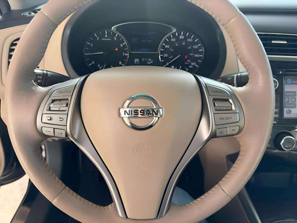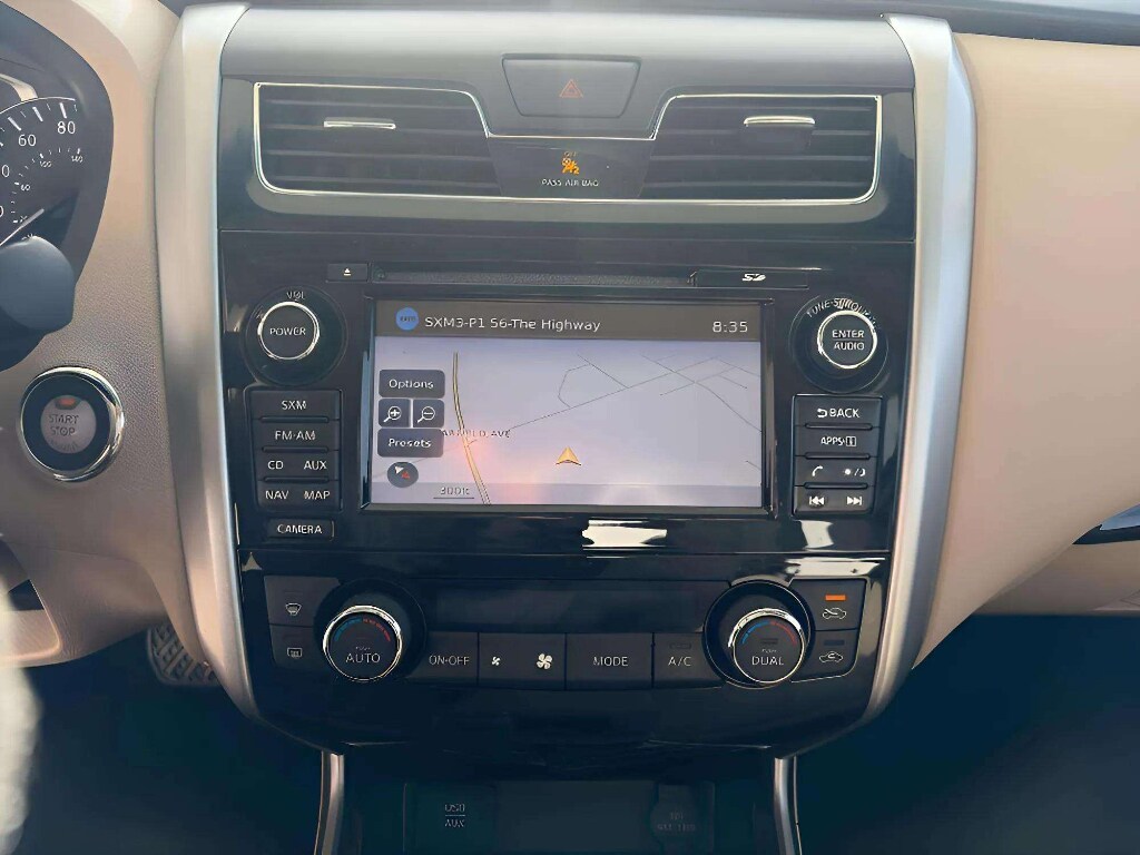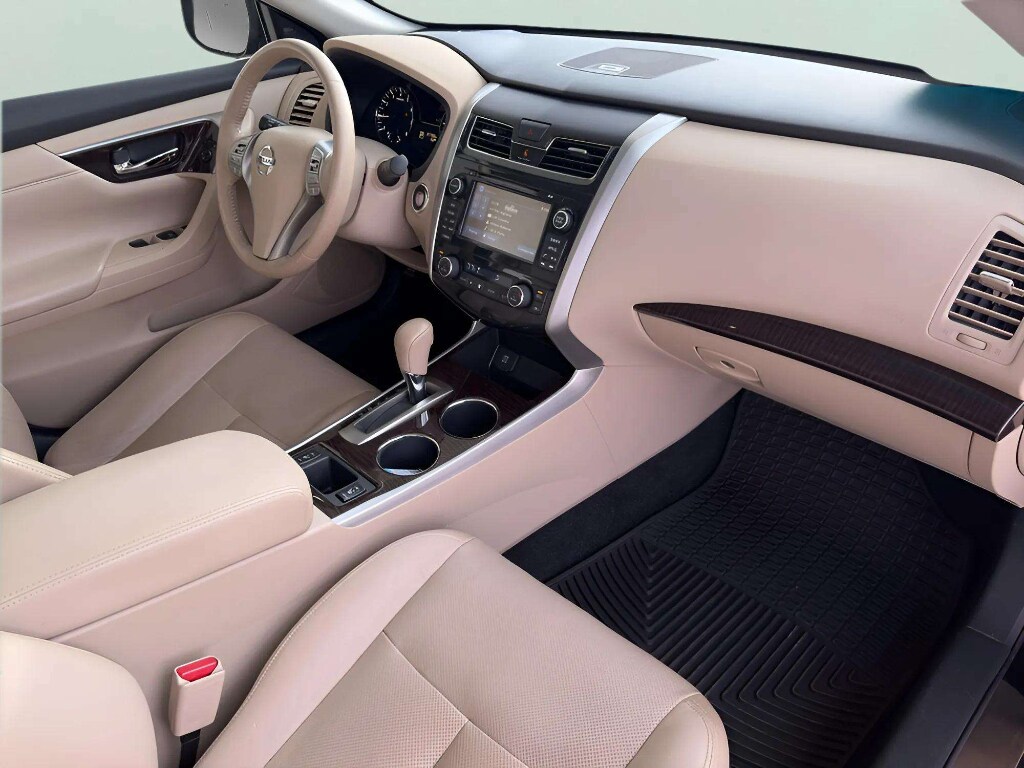 2015 Nissan Altima 2.5 SL clean, dependable midsize sedan located in Pierre, SD and priced to sell. This Nissan Altima pairs an efficient 2.5L 4-cylinder gasoline engine with front-wheel drive for a smooth, responsive ride and excellent fuel economy for daily commuting or longer drives. Interior comfort and technology are priorities: premium leather seats cradle occupants while the heated steering wheel keeps you comfortable during South Dakota winters. Built-in navigation makes road trips and unfamiliar routes easier, and safety features such as Lane Departure Warning help provide added confidence behind the wheel.